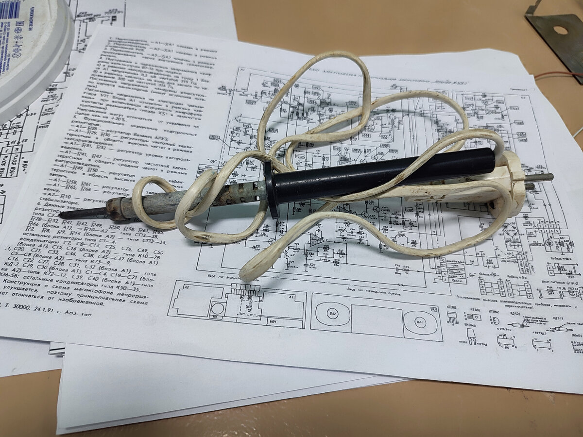 Доброй ночи друзья. Когда я открыл страничку на Дзен, в первых статьях я обещал рассказать об инструментах которые есть у меня. Их у меня немного, но что уж есть). Потихонью обрастем! Ну и наличие того , что у меня есть говорит о том, что я не совсем ремонтник, а просто увлеченный, любитель электроники! Ну нравится это мне)) Паяльник который был у меня в детстве не сохранился конечно. Я даже не помню в какой момент он пропал(. Не будем его брать во внимание)))) Мой первый паяльник я купил уже после свадьбы, надо было что то припаять. Вот он. Он по-прежнему работает. Храню его. Первые платы потрошил именно им. Когда есть паяльник, это уже хорошо) Купил так же баночку канифоли и пузырек паяльной кислоты. Олово собирал с плат советских телевизоров, его там прилично. Потом я купил мультиметр. Купил как то случайно. Попался на глаза в магазине, я его взял. и цену помню, ровно 500 рублей. Вот он MAS830L. Недавно купил новые щупы, как раз на фото примеряю, хотя родные тоже хорошие. Мул