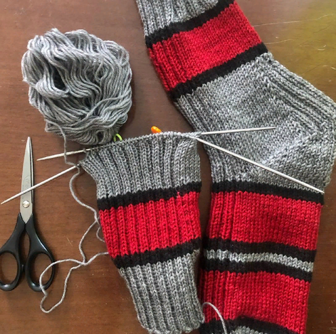 Всем доброго дня! Думала носки не буду вязать до осени, так как сезон кончается, а всех моих близких я обеспечила шерстяными носками. Но, оказалось, что у папы уже две пары носков протерлись. Поэтому я быстренько решила связать новую пару, и сделать ее дополнением к подарку на день рождения. Выбрала полушерстяную нить 50/50, 280м/100гр и вязала на спицах 2,5мм на 60 петлях. Мне очень понравилось цветовое сочетание, очень хотелось мне такое сочетание применить в своих изделиях. Получился такой яркий, чисто мужской вариант. Эти три цвета просто созданы друг для друга))). Пятку вязала в сочетании двух способов: стронг и круглая. Мне кажется, это очень удачное сочетание. Верхняя часть анатомически хорошо садится на пятке, а ее низ закруглен, тоже анатомически повторяя саму пятку. Вот такие носочки получились. Вечером пятницы довязала носочки, постирала, и вот в субботу еще влажными (нет времени досушить) несем подарочки. Носки подошли, просохли и готовы к носки. Пишите, вяжете ли вы еще но