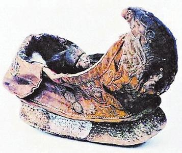 Гусеничный - самый распространенный тип. В период Воюющих государств, когда в Китае уже выращивали хлопок, ползунки обычно изготавливались из хлопчатобумажных и шелковых тканей, а форма развилась из тапочка, и люди стали носить обувь, которая была мягкой, удобной и красивой. На рисунке ниже изображена раскопанная гусеница периода Воюющих государств. Сабо: то есть деревянные сабо. Это обувь для дождливых дней.