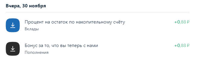 03.12.2021 В своей схеме изъятия 100.000 в месяц с Альфа-банка на МКБ я соблазнился обещанием 8.5% по депозиту от Альфа-банка. Ведь МКБ выплачивает только 5.75%. Можно повысить до 7.75%, но для этого нужно совершить покупок на 20.000 рублей, а с кэш-беком там не очень. Соблазнившись, я перевел весь рублевый финжир и позаимстованные у Альфика кредитные деньги с МКБ на Альфик, это более 300.000 рублей. Благо, произошло это в конце месяца. А 1 декабря Альфа-банк меня отблагодарил щедрыми процентами: Настолько щедрыми, что я начал выяснять причину таких невероятных сумм и обнаружил, что остаток начисляется на средний остаток за месяц. Хотя в расшифровке начисления процентов было вообще указано странное: Проверим. Допустим у меня есть 100.000 рублей и они лежат на счете 10 дней из 30. Тогда по ставке 8% при ежедневном начислении я получу 100.000 * 10 дней / 365 дней * 8% / 100% = 219 рублей процентов за депозит. Если же мы считаем по среднему остатку за месяц, то получается средний остаток
