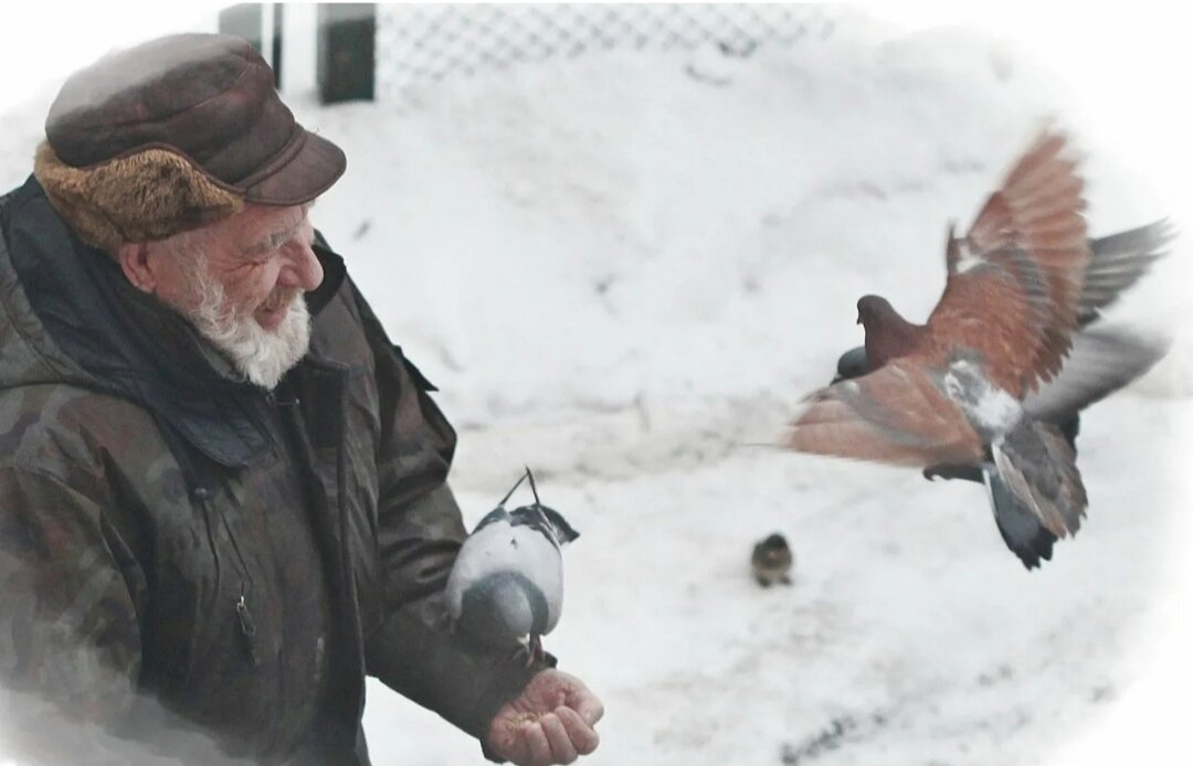 🔥🔥🔥 Я шёл выносить мусор и увидел на снегу полбуханки хлеба. Я поднял его, хлеб оказался высохшим и больше напоминал камень, и кинул в контейнер. Только я отошёл, как услышал сзади ругательства. Я обернулся. Наклонившись, в контейнере ковырялся очень пожилой человек. Бомж!?, - подумал я, - Хотя, нет. Одет прилично. Что же его так заинтересовало в этом ящике? Дед достал тот самый хлеб, стряхнул его и бережно убрал в пакет. Чудной! - опять подумал я и пошёл домой. На следующий день я снова встретил этого деда, но уже на остановке. Он понемногу доставая хлеб из пакета кормил птиц. Я присел рядом с ним на скамейку. Я внимательно наблюдал как птицы подходят и берут крошки хлеба, причём делают это аккуратно и неспешно. - Им важно очень хорошо питаться. Зимой без еды очень тяжело и можно погибнуть, - внезапно еле слышно сказал старик, - Я никогда не думал, что настанет тот день, когда люди перестанут ценить хлеб. Каждый день я собираю его на улице, в помойках. За последние годы я видел