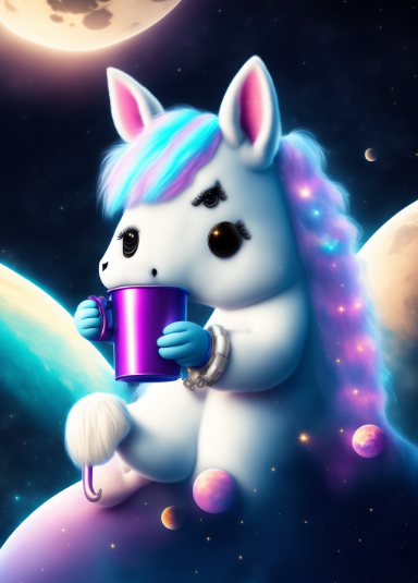 Давным-давно, в волшебном королевстве, наполненном заколдованными лесами, сверкающими реками и высокими горами, жил единорог по имени Макс. Макс не был похож ни на одного другого единорога, он был уникален во всех отношениях. У него была серебристая грива, которая искрилась на солнце, шерсть белая, как снег, и рог, который сиял ярче бриллиантов. Макс жил в маленьком коттедже недалеко от деревни, где жили другие единороги. Они были известны своей любовью к магии и способностью создавать красивые радуги и цветы одним взмахом хвоста. Но Макс был другим, у него была глубокая любовь к кофе. Каждое утро он отправлялся в деревню и заходил в местное кафе, чтобы выпить чашечку. Другие единороги не могли понять, почему Макс так любит кофе, они думали, что это странный напиток для единорога. Но Максу было все равно, ему нравился насыщенный и дерзкий вкус кофе и то, как он заставлял его чувствовать себя бодрым и настороженным. Однажды Макс сидел в кафе, потягивая кофе, когда вошла молодая девушка.