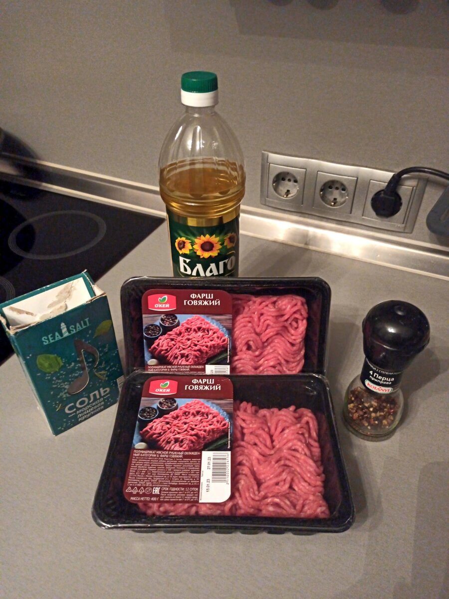 ● 2 упаковки говяжьего фарша;