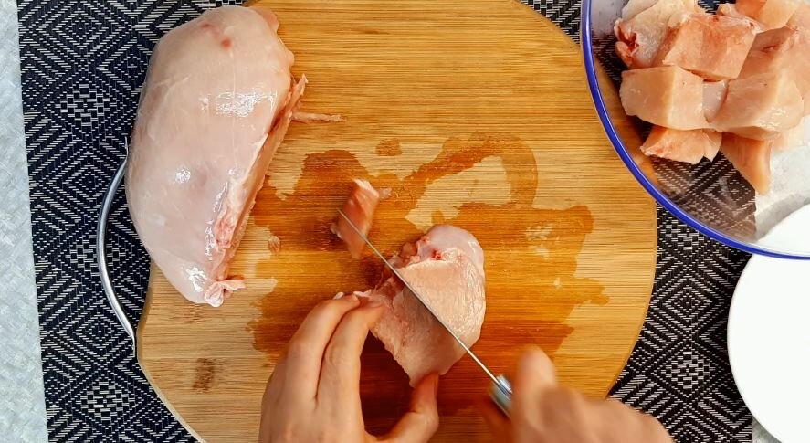 Этим рецептом я, наверняка, никого не удивлю, да и не ставлю я такой цели. Просто делюсь тем, что готовлю на скорую руку в будни. Ведь именно рутинная будничная готовка часто и требует от нас выдумок — что же приготовить, чтобы по-быстрому и вкусно, и сытно. Так что это просто идея, может, кому-то пригодиться или придется под руку. 🔹Ингредиенты 🔹 ✔Куриная грудка – 1 шт. ✔Специи – по вкусу (у меня черный перец, паприка, хмели-сунели) ✔Соевый соус – 4-5 ст. л. ✔Майонез – 4 ст. л. ✔Кетчуп – 4 ст. л. ✔Сыр, любой – 120-150 г. ✔На гарнир у меня булгур — 300 г. ✔Побольше любви и хорошего настроения (обязательно). Приготовление ✅Куриное филе режем на средние кусочки. Добавляем специи, сою, все перемешиваем и убираем мариноваться на часик. Можно подготовить курицу заранее, например, за день. В холодильнике ее можно держать в маринаде пару дней. ✅В миске смешиваем майонез и кетчуп. Вместо кетчупа можно использовать томатную пасту хорошего качества, а вместо майонеза — сметану. ✅Берем форму для