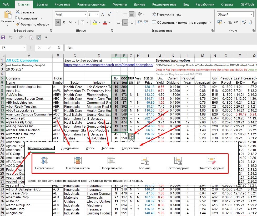 ➖ создать сводную таблицу и т.д. Попасть в это меню можно также с помощью сочетания горячих клавиш CTRL + Q, предварительно выделив ячейки. Подробное видео можете посмотреть по ссылке: https://t.me/easy_xls/21