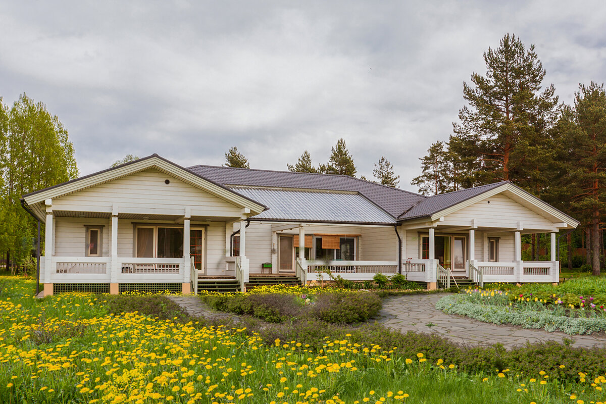 Просторный дом проекта RD-777 общей площадью 448 м2 особенно удобен для проживания большой семьи с детьми и (или) с пожилыми родителями, т.к. основные помещения находятся на первом этаже. Дом имеет четыре спальни, каждая из которых оборудована отдельным санузлом с ванной. Две спальни имеют собственные гардеробные. В доме имеется также общий санузел с душевой кабиной. Для приготовления и приема пищи предусмотрена кухня-столовая. Для отдыха и приема гостей в доме имеются просторная гостиная и холл. Три крытые террасы позволяют организовать отдых на отрытом воздухе даже в дождливую погоду. Помещения первого этажа: На втором (мансардном) этаже находится холл площадью 33,2 м2. Компания «Raivola House» – строительство загородных коттеджей, бань и гаражей «под ключ» по индивидуальным проектам. Адрес компании: Выборгский район, гп Рощино, ул. Железнодорожная 4Б, корпус 3. Телефон: +7 (812) 603-77-30 e-mail: info@raivola-house.ru