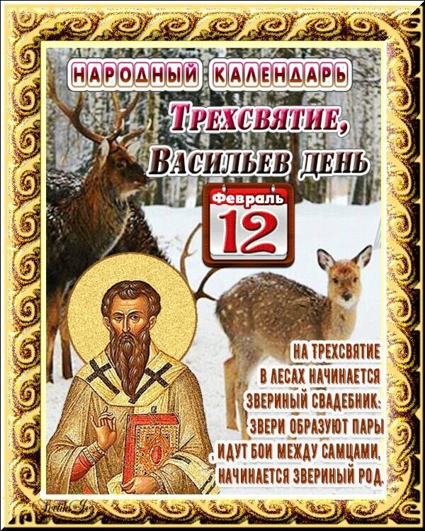 Трехсвятие, Васильев день. Собор святых Вселенских учителей и святителей Василия Великого, Григория Богослова и Иоана Златоуста празднует Православная церковь 12 февраля.