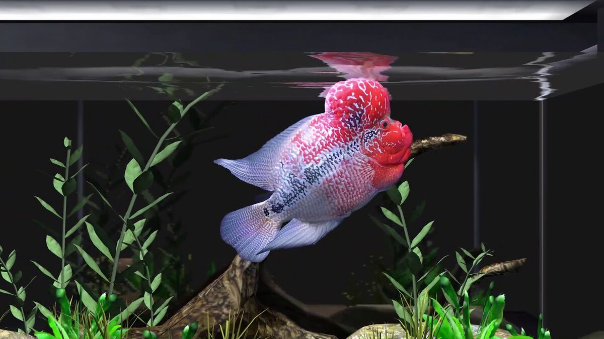 Флауэр Хорн (Flowerhorn) - это декоративный вид цихлид, полученный в результате скрещивания Amphilophus labiatus или "красного дьявола", цихлазомы трёхпятнистой (Cichlasoma trimaculatum) и "кровавого попугая" (Amphilophus citrinellus × Vieja melanurus). Работа по выведению началась в начале 90-х годов в Малайзии, и в конце 90-х первые Флауэр Хорны появились в продаже. Почему такие странные на вид рыбы быстро стали популярными? Также как и золотые рыбки с "шапочками" Хорны ценятся в азиатских странах за их большой выступающий "лоб", который, по приданиям, сулит удачу в делах и богатство. А, если у рыбки ещё и пёстрый узор по бокам, напоминающий иероглифы, то такой экземпляр уйдёт очень дорого истинным ценителям удачи. Головной выступ этой цихлиды называется затылочным горбом и состоит преимущественно из жировой ткани. Однако интеллектом эти гибриды не обделены. Они взяли всё самое лучшее от своих прародителей: выносливость, размер (до 40 см!), яркий цвет и невероятный ум, который прис