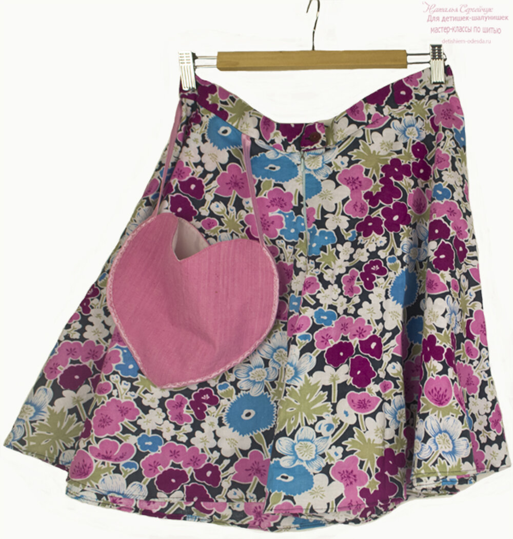 Такой фигурный карманчик украсит детскую одежду, да и не только ее. Это отлетной кармашек по типу лакомника. Я шила такой для юбки солнце, а вы можете сделать, например, сумочку ребенку. В этом случае для лучшего результата укрепляйте ткань плотным дублирином. Лучше всего подойдет воротничковый. Также можно использовать бортовку. Только выкраивайте ее на 2-3 мм меньше основной детали. Таким образом вы избежите толщины в швах. Если вам интересно что же делать дальше, то можно перейти по ссылочке на сайт detishiem-odesda.ru/...man Там же найдете видео по шитью кошелечка в виде сердца.
