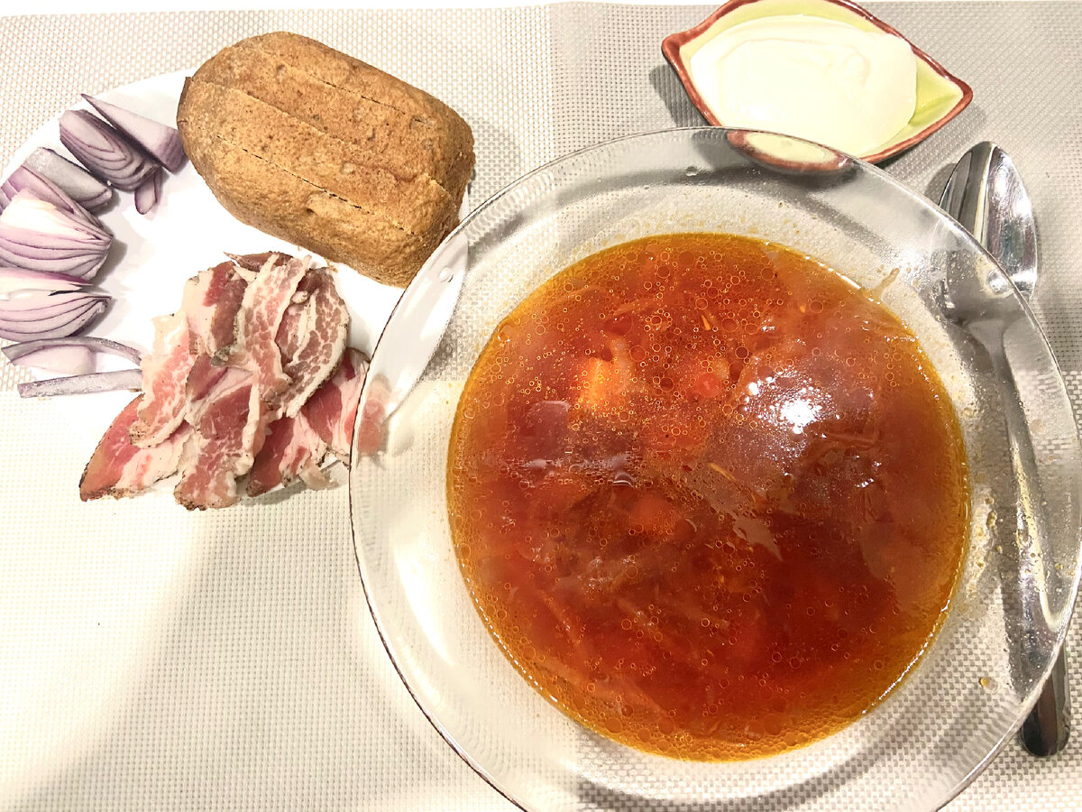 Есть масса рецептов борща, у каждой хозяйки он свой. Стоит сказать, что я всё еще в поиске своего того самого, идеального сочетания ингредиентов. Вот чтобы прям ум за разум заходил) но хочу поделиться самым удачным на данный момент рецептом. Естественно, на мой скромный взгляд) Итак, вам потребуется на кастрюлю 4л: Мясо для бульона(тут кто на чем любит, мы едим супы без мяса, поэтому я варю на куриных крылышках) Капуста-300гр Морковь средняя-1шт Луковица небольшая-1шт Свекла средняя-1шт Картофель средний-3шт Уксус 9%-1 ст.л. Сахар- 1/2 ст.л. Томат паста-1 ст.л. Чеснок-2 зубчика Соль, перец-по вкусу 1.Пока варится бульон, подготавливаем ингредиенты - овощи чистим, моем, капусту шинкуем 2.Лук и картофель режем мелким кубиком. Морковь, свеклу и чеснок натираем на мелкой тёрке. 3.Делаем зажарку: сначала обжариваем лук до полупрозрачности, добавляем к нему морковь и обжариваем минутки 3. Далее идёт свекла и чеснок, также жарим 3-4 минуты. Кладём томат пасту, сахар и уксус и тушим минут 7