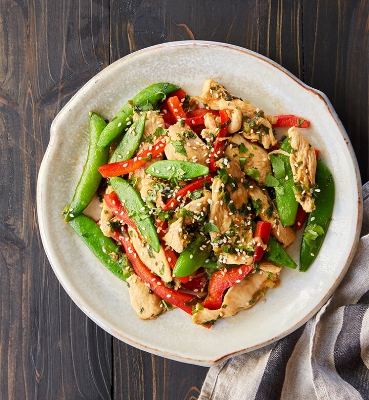 Итак, представим, что вам очень, очень не хочется готовить. Но если у вас несколько основных продуктов на вашей кухне и 20 минут, вы можете приготовить наивкуснейшее жаркое из курицы и гороха. Это просто, вкусно и гораздо полезнее, чем жирная еда на вынос, которую вы собирались заказать. 4 порции Ингредиенты: Приготовление: 1. В большой сковороде разогрейте масло на среднем огне. Добавьте лук и чеснок и жарьте до появления аромата, около 1 минуты. Добавьте болгарский перец и горошек и жарьте до готовности, 2-3 минуты.