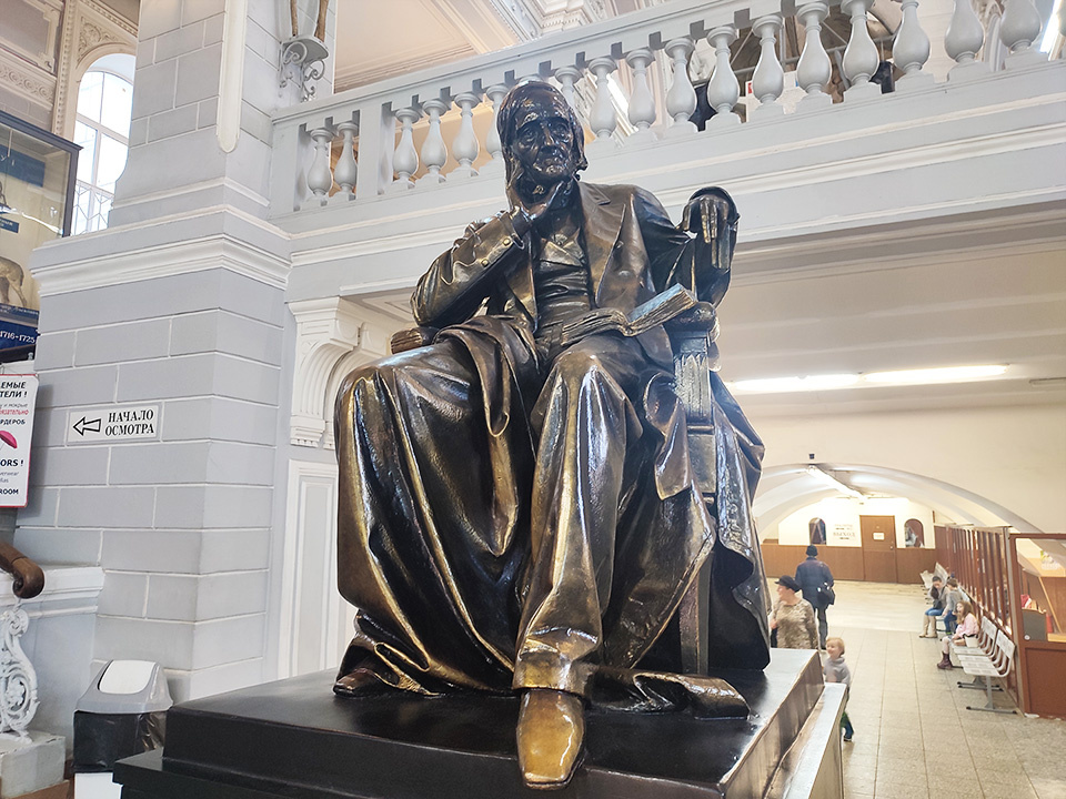Перед началом осмотра в музее стоит скульптура российского ученого Карла Эрнста фон Бэра. Она здесь, конечно же, находится не случайно – учёный был профессором зоологии, руководителем зоологической коллекции Российской Академии наук. Его вклад в биологию огромен: совместно с другими учеными он основал современную эмбриологию и сравнительную анатомию, изучал медицину, преподавал в Кёнигсбергском университете, написал труд «История развития животных», изучил и описал Закон зародышевого сходства, открыл яйцеклетку млекопитающих и многое другое.