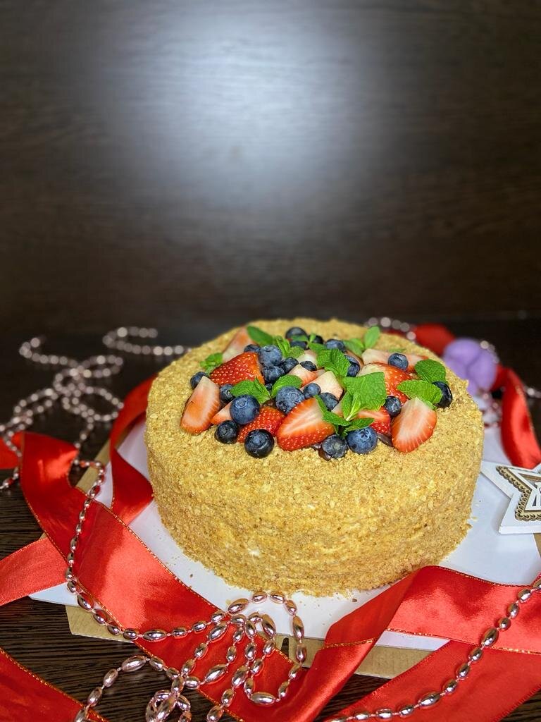 Нежные, тающие во рту медовые коржи, пропитанные воздушным кремом. Медовый торт получается очень вкусным, нежным, воздушным и пушистым ! Ингредиенты Коржи Сливочное масло - 15 гр. Мед - 45 гр. Сахар - 100 гр. Сода - 5 гр. Яйцо куриное - 2 шт. Мука - 250 гр. Крем Сметана - 100 гр. Сливки 33 - 35% - 100 гр. Творожный сыр - 200 гр. Сах.пудра - 60 гр. Шаг 1. Сахар, мед, сливочное масло комнатной температуры отправляем в сотейник и ставим на малый огонь до растворения сахара. Шаг 2. Сотейник снимаем с огня. Добавляем соду и начинаем обильно мешать венчиком. Масса начнёт бурлить и увеличиваться. Мешаем до тех пор пока не начнёт масса оседать. Шаг 3. Даём массе остыть около 15 - 20 минут . Шаг 4. Вводим в чуть тёплую массу яйца по одному. Вымешиваем до однородности. Шаг 5. В жидкую массу всыпаем муку и вымешиваем. Тесто получается мягким немного липнет к рукам. Отправляем тесто в холодильник на 30 минут. После холодильника тесто перестанет липнуть к руками и будет плотнее. Шаг 6. Достаё