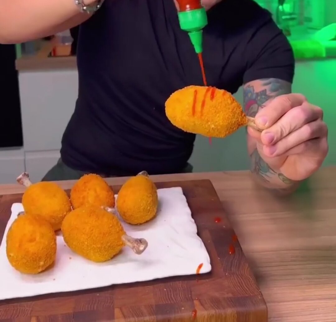 Сегодня напишу про куриные ножки, которые не оставили меня равнодушным, они понравились мне не только тем, какие они вкусные, но и тем что их очень легко есть. Мне не пришлось где-то их там грызть, очень вкусные и простые в приготовлении. Первый раз я их попробовал приготовить, когда искал альтернативу острым крылышкам из "KFC", как вы уже могли догадаться они не сильно похожи... Но по я всё равно был очень доволен, поэтому сегодня попробую снова приготовить их! Хрустящие куриные ножки с пюре и сыром🍗 ⠀ 🔹ИНГРЕДИЕНТЫ: - Куриные голени 8 шт. - Картофель 4-5 шт. - Тёртый сыр 100 гр. - Сухой чеснок 1 ч.л. - Паприка 1 ч.л. - Итальянские травы 1 ч.л. - Соль и перец - Сухари панировочные 3 ст.л. - Моцарелла 8 кусков внутрь ⠀ - Яйца, мука и сухари для панировки Обжаривать ножки по 3-4 мин в масле. ⠀ Курицу тушим под крышкой с добавление воды 25 минут, снимаем мясо с ножек, но косточки не выбрасываем. Картошку варим до готовности, после измельчаем её вилкой, потом мелко рубим куриц