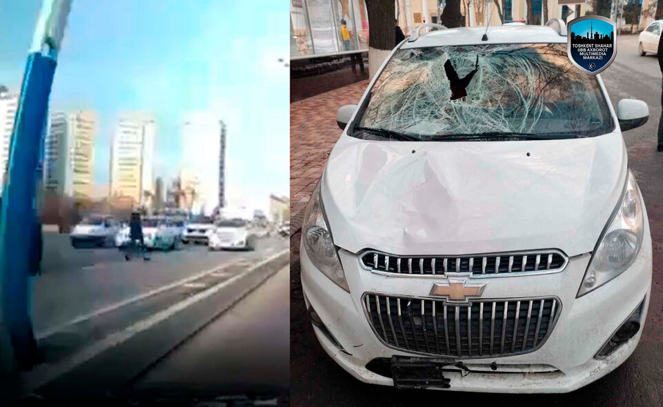 В центре Ташкента автомобиль "Спарк" сбил пешехода, перебегавшего дорогу. Видео