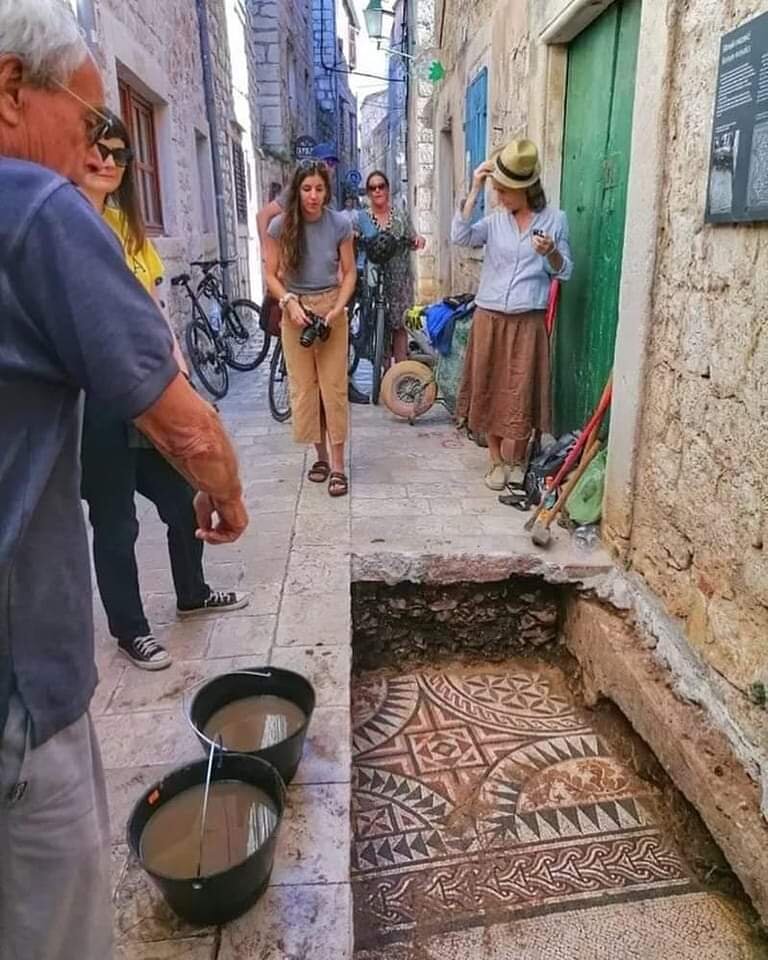 Красоту римского стекла мы недавно оценили и немало ею восторгались, но пришла пора лицезреть ещё один вид античного искусства, который сегодня прочно ассоциируется с Древнем Римом. Поговорим о мозаике. Здесь надо уточнить, что технику мозаики придумали не в Риме, а переняли у греков и довели до совершенства. 1) Идёшь такой по древним улочкам хорватского городка Стари-Град, что на острове Хвар, и не подозреваешь, что сокрыто от глаз людских. Римская мозаика I-III века н.э, 2) Римский мозаичный пол I века н.э, обнаруженный на территории винодельни в провинции Верона в Италии. Обратите внимание на толщину культурного и "некультурного" слоя. 3) Римский мозаичный пол, III век нашей эры. Обнаружен во время строительных работ в Лондоне в 1869 году.