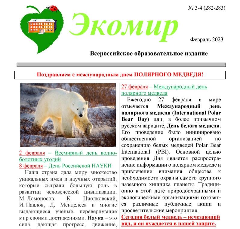 Экомир - февраль, 2023. Экология – это полезно и интересно