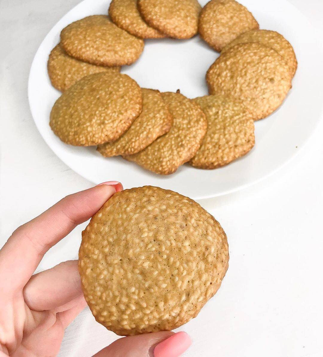 Это безумно вкусное хрустящее кунжутное печенье точно заслуживает Вашего ❤️ на фото 😉👍🏻 ⠀⠀ Очень оригинальный рецепт, который готовится всего 15 минут, а вкус вас приятно удивит 😁✅ ⠀⠀ 🔻На 15 печенек нам понадобятся: ▪️2 яйца; ▪️мука рисовая или кукурузная ~ 100-120 грамм; ▪️сливочное масло 30 грамм; ▪️подсластитель по вкусу; ▪️кунжут ~ 80-100 грамм; ▪️разрыхлитель 1/2 ч.л. ⠀⠀ 🔻Приготовление: Все ингредиенты смешиваем до однородного состояния. Выкладываем с помощью столовой ложки тесто на пергамент, формируя печеньки и выпекаем в духовке ~ 10 минут при 180-200 градусах. ⠀⠀ Очень вкусный вариант к чаю/ кофе, а также для перекуса с собой 👜 ❤️