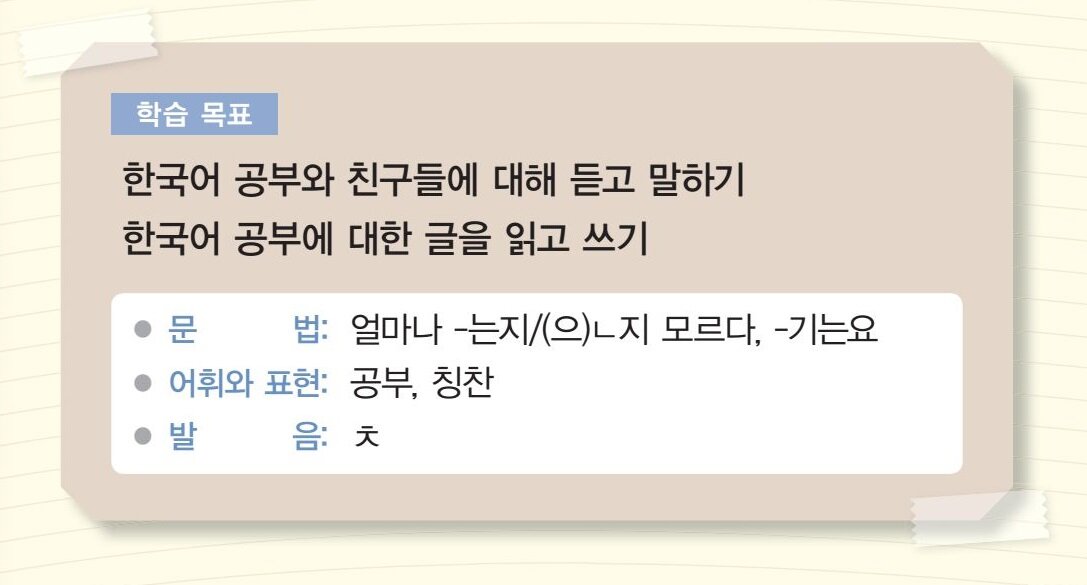 타완: 그러게요. 벌써 마지막 단원이에요. 힘든 적도 있었지만 역시 계속 공부한 것은 잘한 일 같아요. 이제는 한국어 공부에 자신감도 생겼고요.