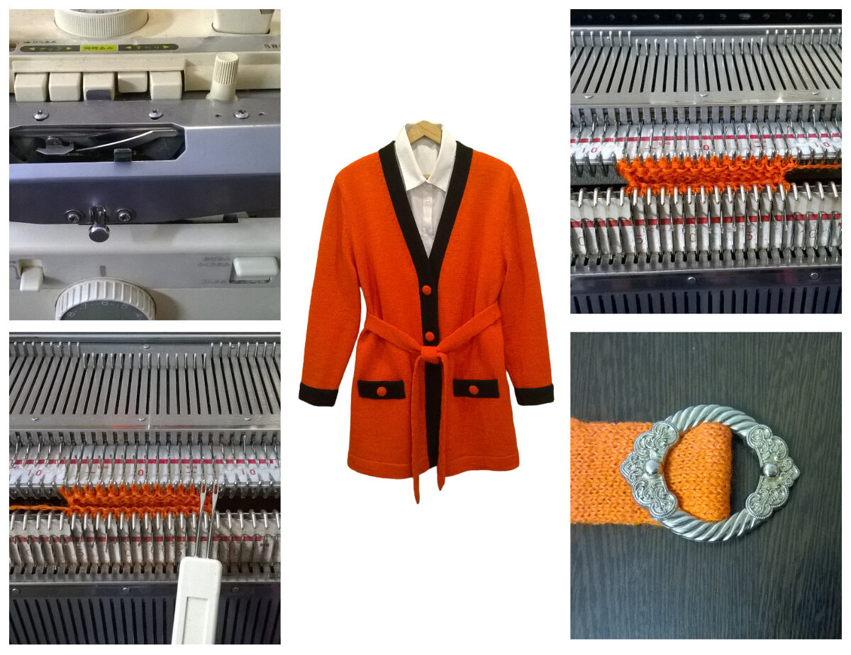 Выдвинуть по 10-15 игл в РП на верхней фонтуре и на одну меньше на нижней в зависимости от ширины пояса: Бросовой нитью провести ряд-зигзаг на произвольной плотности, повесить семерку-оттяжку с грузиком. Нажать по одной кнопке PART на каждой фонтуре: Связать 2 закрепляющих ряда, выключить кнопки, вязать несколько рядов бросовой нитью ластиком: Вновь включить кнопки PART, связать 2 ряда катушечной или кордовой нитью (чтобы можно было легко отделить брос от основного полотна): Поменять нить в нитеводе на основную и вязать круговым вязанием нужную длину пояса: Закончить вязание клином - с одной стороны 2-3-игольным деккером на обоих фонтурах убавлять по одной петле каждые 2 ряда: Поутюжить пояс с паром. Если предполагается пояс с пряжкой, то выдернуть катушечную нить, пропустить через шпенёк пряжки, открытые петли прикеттлевать к изнаночной стороне: Если пояс будет завязываться на узел, на втором конце связать такой же клин, как на первом. Надеть первый ряд из основной пряжи на игольницы