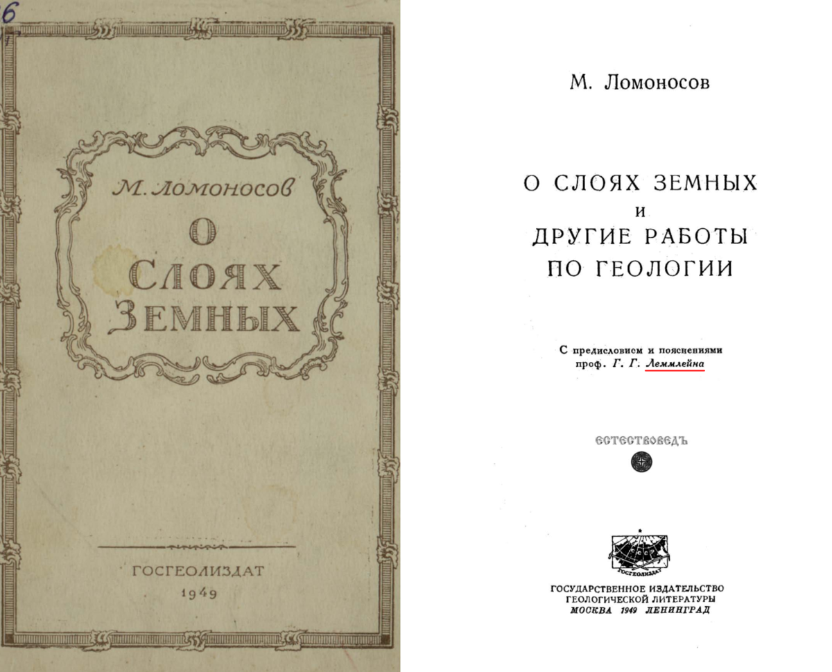 "О слоях земных и другие работы" (скачать). Под "другими работами" здесь подразумеваются работы вроде Горного и Рудного дела, описание камней, металлов, полуметаллов, жирных минералов.
