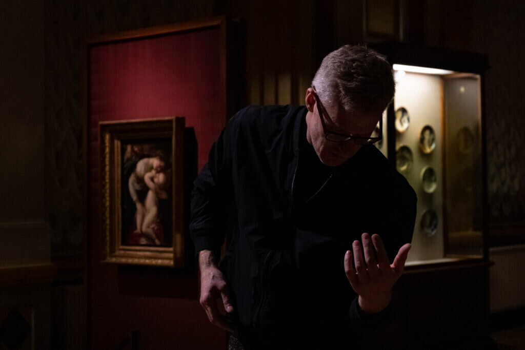 Полотно, у которого разворачивается действо, — «Мадонна с младенцем и ангелами» Джулио Чезаре Прокаччини, написанное в 1610—1612 годах.