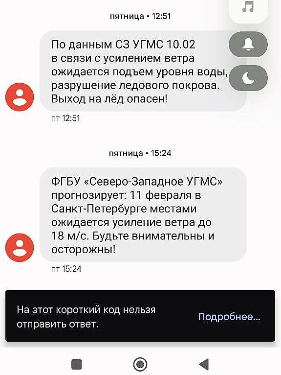 2. Сомнительная ценность предупреждения, высланного в пятницу 10 февраля в 12-51, то есть когда уже и ветер и снег вовсю парализовали деятельность городских служб, а люди, которые приняли в пятницу ( а то и в четверг) решения о поездках на рыбалку на лед, уже все находились на льду. И соответственно ценность этого предупреждения для них - не то что нулевая, а отрицательная