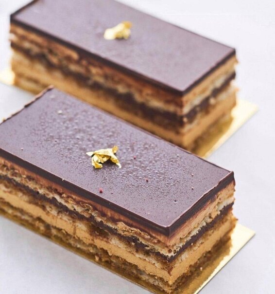 ⠀ Бисквит (3 шт. 20х20 см): 75 г белка 15 г сахара 22 г сливочного масла 112 г миндальной муки 112 г сахарной пудры 150 г яйца 35 г муки 36 г темного шоколада Приготовление: духовку разогреть до 220°С. Подготовить 3 листа из бумаги для выпечки. Нарисовать рамку 20х20 см. Перевернуть бумагу. Противни застелить бумагой для выпечки. Отдельно взбить белки с сахаром до устойчивой пены. Смешать и просеять сахарную пудру, пшеничную и миндальную муку. Добавить яйца и взбить миксером в течение 8 минут. Белки аккуратно добавить в миндальную массу. В конце ввести предварительно растопленное сливочное масло. Полученное тесто разделить на три части, разровнять на бумаге ровным тонким слоем и испечь по очереди. Время выпечки ~7 минут. Готовые бисквиты полностью остудить. ⠀ Кофейный сироп (для пропитки): 65 мл воды 33 г сахара 4 г раствор.кофе смешать воду с кофе и сахаром, довести до кипения, остудить. ⠀ Кофейно-маслянный крем: 100 г сливочного масла размягченного 50 г яйцо