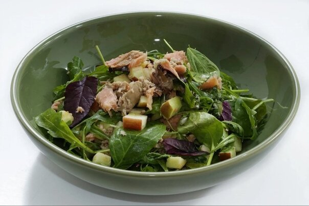 Салат с печенью трески и копченой горбушей