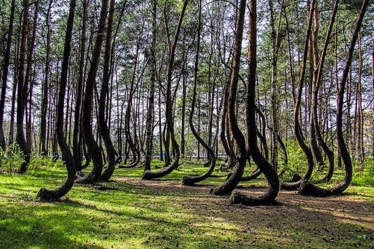 По всей планете встречаются подобные рощи и леса, с гнутыми, "танцующими" деревьями. Вот это лес в Польше А это - уже Румыния: В России тоже такое есть, в Калининградской области. Тут деревья уж петли выписывают: В причина такого роста деревьев? Любители мистики грешат на аномальные зоны, какие-то потоки энергий или даже инопланетян)) Ученые ищут причину в составе местной почвы и воды, обвиняют гусениц, грызущих верхушки юных саженцев.