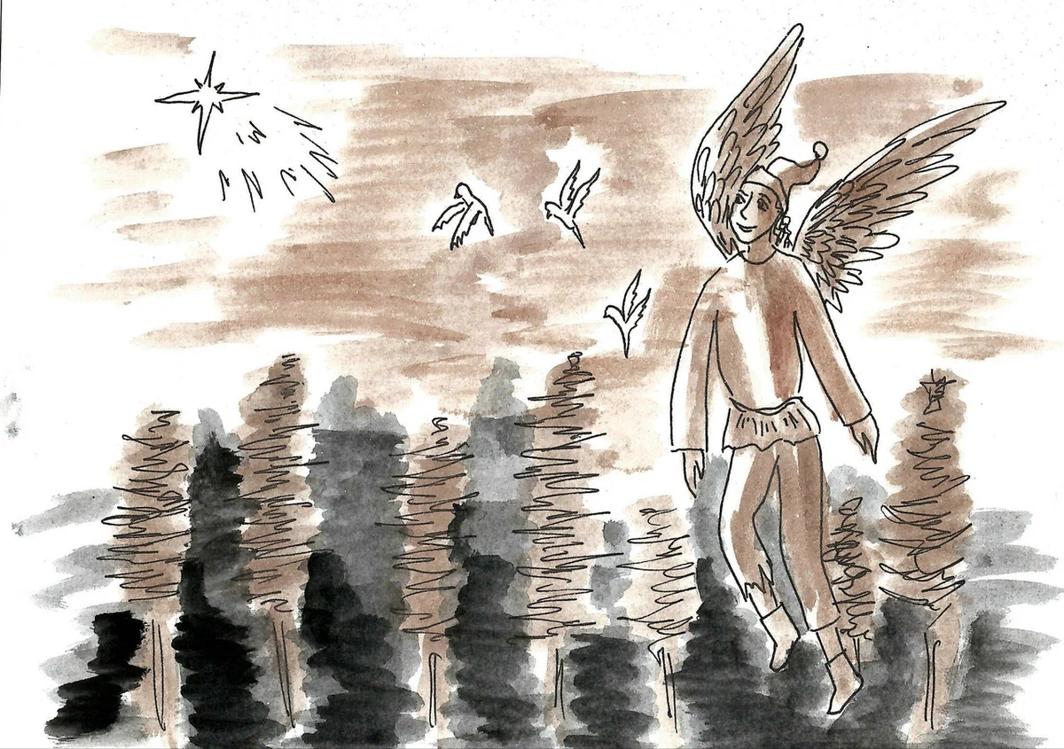 Я долго брёл совсем один, по дебрям сумрачного леса, И сетью чёрных паутин мне душу оплетали бесы. И путь дневной закончен был, у мрачно-скального обрыва, И бледный ангел черно-крыл спустился с тучи над заливом. Он подлетел, и взгляд его мне сердце пламенем овеял. «Я ангел власти громовой, я семя жизни всюду сею. Ты расскажи свою печаль, свои мечты поведай с грустью. Я ветер, уносящий в даль, как листья, сорванные чувства. Я хлеб не собранных полей, я вкус не сорванного плода. В мою страну открыта дверь тому, кто потерял дорогу. Сбрось камни тяжкие с души, растает сумрак пред тобою, Пока свободен путь, спеши зверями стоптанной тропою. Ты принесёшь свою тоску к подножью каменного града, Пройдёшь по черному мосту к ограде сумрачного сада. В прохладе призрачных дерев, в тумане, сотканном из стали, Веками сгорбленный старик. Возьми из рук его скрижали. В саду священный кедр стоит. Он небо кроной задевает. Он всем деревьям родовит. Над ним священный дух летает. Прочти. То Вечный начертал Ве
