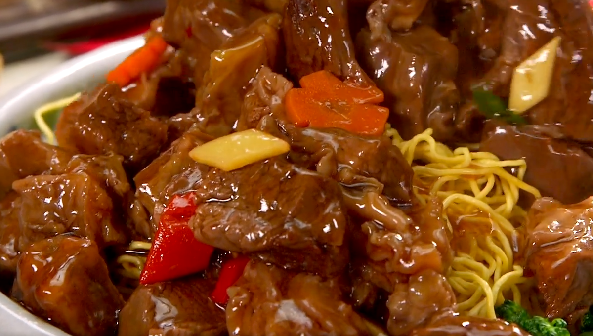 Вареной лапши 198 г Нарежьте говяжью грудинку крупными кусками. Отварите и слейте бульон.