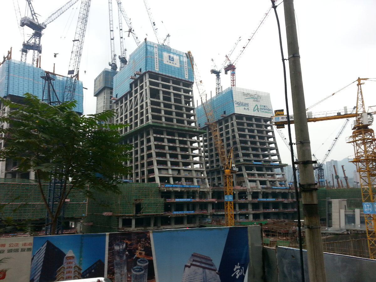 Далее я вернулся в гостиницу на отдых, но в отличие от остальных постояльцев (как западников, так и китайцев, в соотношении примерно 50х50) я не стал мирно отдыхать в холле, а поперся гулять по вечернему Чунцину. И ладно бы попросил вызвать такси, а то пешком. Вечером окрестности гостиницы совершенно изменили свой внешний вид. Рынок закрылся, а с ним исчезли и bangbang. Я сдуру решил проверить куда идет тоннель от моста. А он идет на берег Цзялина, к мосту через эту реку. И тут я понял, что допустил непростительную ошибку, не проверил заряд на смартфоне. Он быстро разрядился и я остался практически без навигации, пришлось экономить заряд. Даже с навигацией в хаосе чунцинских улиц ориентироваться очень сложно. Как оказалось между деловым центром и грандиозной стройкой на мысе Chaotianmen уместился небольшой жилой район. Кое-как выбрался в деловой центр. Под почти проливным дождем немного здесь погулял.