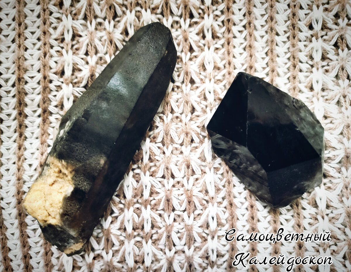 Рада приветствовать всех на своем канале 🌼 Кварц - минерал с богатой цветовой палитрой, как кристаллический, так и скрытокристаллический. Сегодня поговорим о кристаллических представителях минерала, дымчатом кварце и морионе, которые часто путают из-за схожего оттенка 🌑 Оттенки дымчатого кварца варьируются от легкой дымки до темно-коричневого, почти черного. Самые темные экземпляры на первый взгляд могут выглядеть почти как черный кварц морион. И тут возникает путаница, кто есть кто. Часто и в магазине камней и минералов и сами не разбираются, как их отличить. Бывает, придешь за морионом, а тебе предлагают под его видом дымчатый кварц, мол, черный же, смотрите, какой красивый. А ты берешь такой камешек и подносишь к лампе: нет, товарищи, смотрите, просвечивает, значит, дымчатый. Да, красивый, но совсем другой минерал. Окраска мориона получается замещением ионов Si4+ на A13+, а дымчатому кварцу цвет придают примеси железа или алюминия. Для примера покажу два образца из своей колле