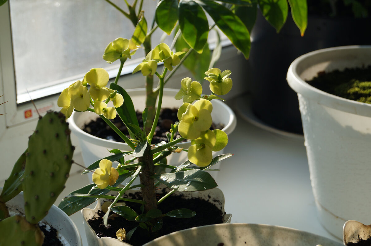 Продолжаю мыть, стричь, лечить свои комнатные растения и уже изрядно устала. Не сдаюсь: радуюсь и целую в макушки тех, кто зиму пережил молодцом, а тех, кто нет - тех стригу и поливаю фитовермом с двойным усердием. На очереди вторая комната: два окна - южной и восточной ориентации, полка с аспарагусами на стене и куча горшков на полу. Вообще, надо сказать, это очень странная уборка. Неделю таскаешь горшки туда-сюда, что-то льёшь, что-то трёшь, умоталась вся, а порядка не прибавилось. А где-то прибавилось и бардака. Начать я решила с кофейного дерева, которое неожиданно выросло за последние пару лет и теперь на голову выше меня. Тащу его в ванну... Крона загущена, вырезаю ветки, растущие внутрь. Убираю все желтые или сухие листья. Теперь в ванной комнате расстилаю пленку на полу, сама лезу на табурет. После, мою из душа каждый лист, балансируя на одной ноге и обливаясь водой. Не знаю, насколько кофе стал чище, но я вымокла с головы до ног. Вношу подкормку, обрабатываю листья фитоверм
