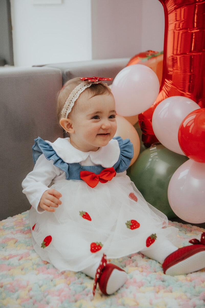 Фотосессия у нас была дома. Дресс код мы выбрали бело джинсовое (легко подобрать и стильно) и добавили изюминку - клубничный принт, чтобы было более интересно и красочно.