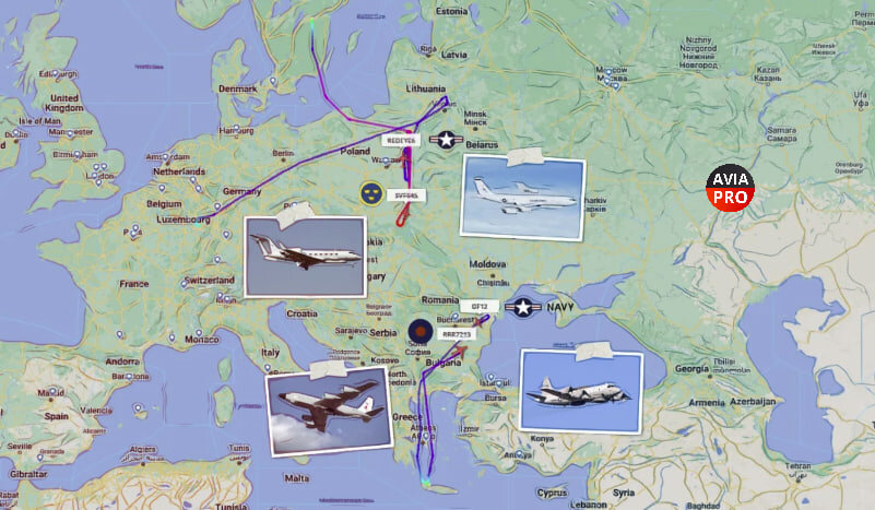 ▪️EP-3E ВМС США (регистрационный номер 159893) находится над восточной Румынией
