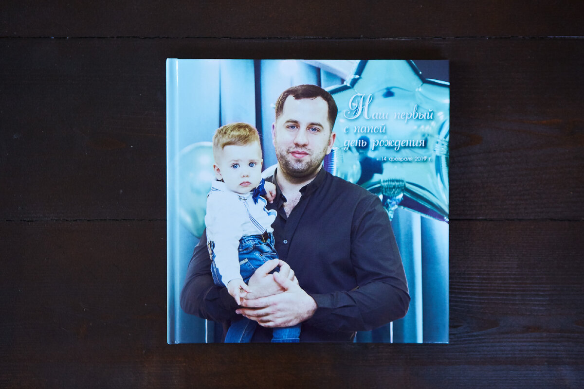 Первый день рождения мальчика, его папы, да ещё и в день всех влюблённых 14 февраля. Вот такое радостное совпадение в одной семье. Внешний вид Фотокнига печаталась полиграфическим способом, имеет твёрдую обложку и ламинированные страницы. Тип обложки - фотообложка, она тоже покрыта глянцевой ламинацией. Дизайн фотокниги Несколько разворотов этого фотоальбома очень красивой семьи: Технические данные Мы создаём дизайны фотокниг, альбомов и каталогов из любого фотоматериала. А ещё мы очень любим сотрудничать с профессиональными фотографами и свадебными агентствами на особых условиях. Другие наши работы: