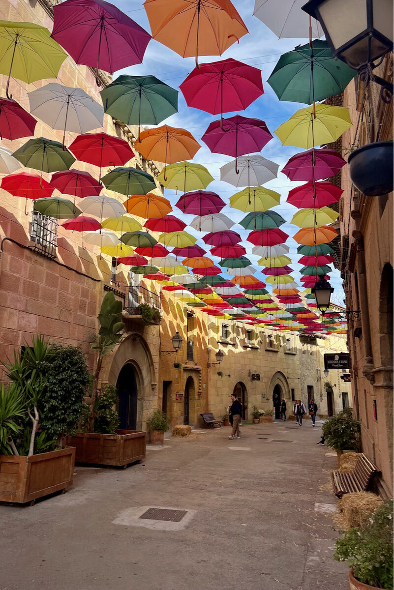 Как такое возможно? Очень просто. Всемирная выставка подарила Барселоне не только площадь Испании и красивый Национальный дворец, но и уникальный архитектурный комплекс, воссоздающий атмосферу средневековой Испании. После выставки его решили оставить как музей под открытым небом, дав название - Испанская деревня (Poble Espanyol).