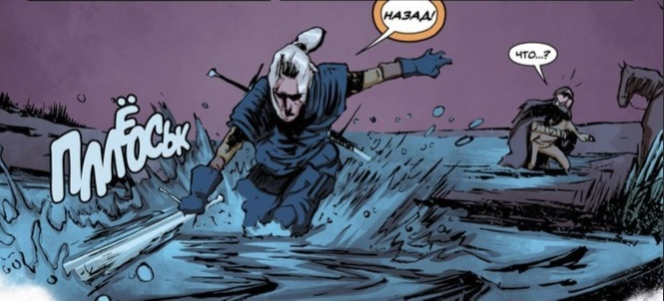 Признаться, я настороженно (но не предосудительно!) отношусь к продукции по мотивам. Помню, в начале нулевых посмотрел польскую полнометражку по «Ведьмаку»… И послевкусие осталось до сих пор. Но Анджей Сапковский продолжает обещать, но не выпускает новые книги в полюбившейся вселенной, так что приходится удовольствоваться тем, что есть. Доброта лучше ведьмовства Комикс, хоть и не противоречит книгам, но не скрывает, что написан по мотивам прежде всего игры, и это выдает обилие боевых сцен и заклинаний. Подошел к речке – сразился с утопленником, спустился в подвал – нарвался на армию нежити и т.д. Рисовка размашистая, местами небрежная. Иногда уместно, но в другой раз хочется больше деталей. Геральт едет на Плотве мимо берега и спасает охотника. Тот оказывается вдовцом, чья жена превратилась в бруксу (разновидность вампира), и периодически он видит ее издали. Бродящие неподалеку леший и могильная ведьма – это отголоски славянских преданий. Бабу Ягу тоже можно назвать могильной ведьмо