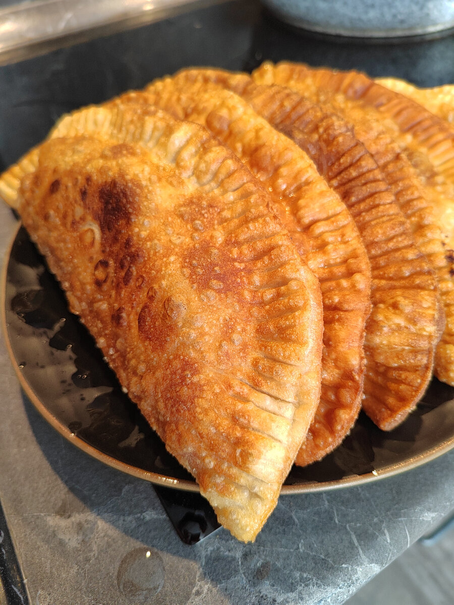 Ингредиенты для теста: Вода - 400 мл Мука - 1 кг Соль - 1 ч. л. Ингредиенты для фарша: Говядина - 700 гр Свинина - 400 гр Лук - 2 шт (крупные) Зелень укропа и петрушки - 2 шт Вода - 400 мл Соль, перец - по вкусу Фарш всегда готовлю сам, перекручиваем свинину и говядину на два раза, при этом, когда перекручиваем второй раз лук также пропускаем через мясорубку. В готовый фарш добавляем мелко порубленную зелень петрушки и укропа и 400 мл воды и вымешиваем до однородной консистенции. Приступаем к работе с тестом. Для этого нам потребуется 400 мл крутого кипятка, в него всыпаем чайную ложку соли и просеиваем 1 кг муки. Замешиваем крутое тесто и оставляем его отдыхать примерно на 1 час. Раскатываем наше тесто Выкладываем фарш на тесто и формируем чебурек Край залепляем вилкой. На сковороду наливаем масло, разогреваем и кладем в него чебуреки и обжариваем с обеих сторон. Всем приятного аппетита!