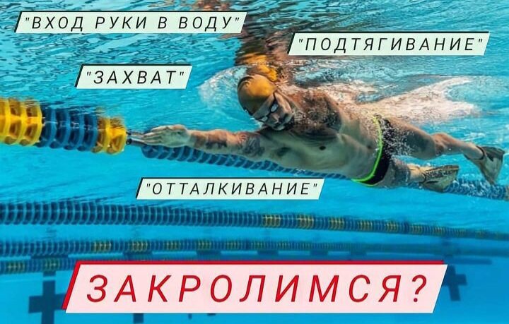 👋🏼Движения руками состоят из гребка и проноса. ⚙Фазы гребка: -вход руки в воду -скольжение -захват -подтягивание -отталкивание 💧Вход в воду и скольжение. Рука входит в воду на ширине📏 между средней линией тела и шириной её плечевого сустава. Ладонь🤚 несколько повёрнута наружу. Затем поворачивается вниз⤵️. Во время входа в воду и скольжения🏄♂️ одной руки другая выполняет отталкивание. 🤲ЗАХВАТ. После скольжения вперёд рука движется вниз по криволинейной〰️ траектории. Кисть слегка разворачивается ладонью кнаружи. Когда локоть окажется выше⬆️ кисти, захват сменяется подтягиванием. Захват одной рукой совпадает с завершением🔚 отталкивания другой рукой и её выходом из воды🏊♂️ 🧤ПОДТЯГИВАНИЕ. Первая подтягивающая фаза гребка. За захватом следует полукруговое🔁 движение руки вовнутрь, которое оканчивается при достижении кистью продольной оси💫 тела или близкого к ней положения примерно под плечевым суставом. Кисть движется с постепенным ⚡ускорением, поворачиваясь ладонью вов