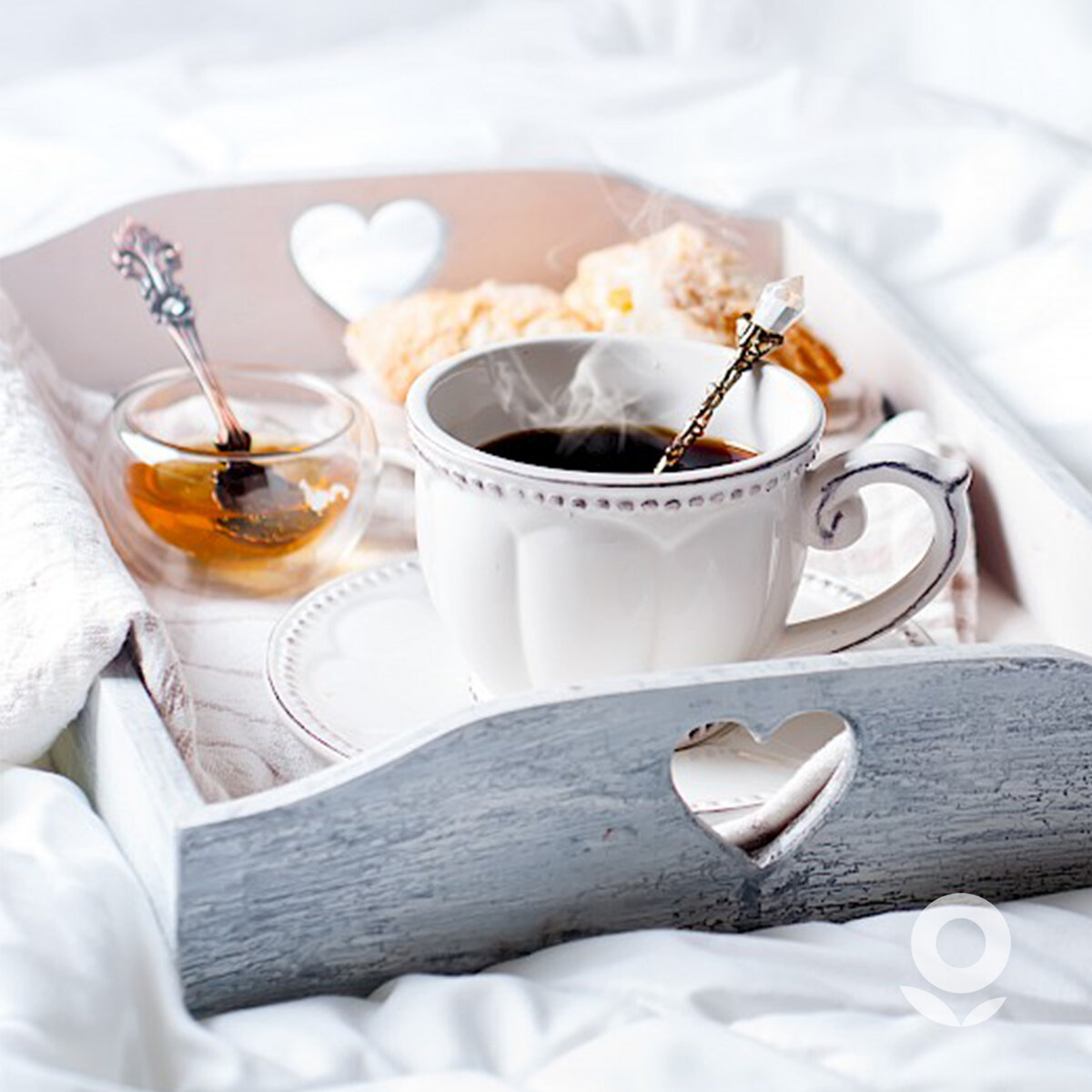 Важно уточнить: завтрак в постель — это не обязательно вдохновляющий сценарий для двоих (его мы рассматриваем как базовый, но вариантов много). Он может быть не только романтическим, а, например, большим семейным — вместе с детьми, которые так любят приходить по утрам к родителям. Идея не вылезать из уютной кровати и вместе съесть тосты с шоколадной пастой под мультфильмы им точно понравится (главное, заранее позаботиться о термокружках или стаканах‑непроливайках с трубочками).