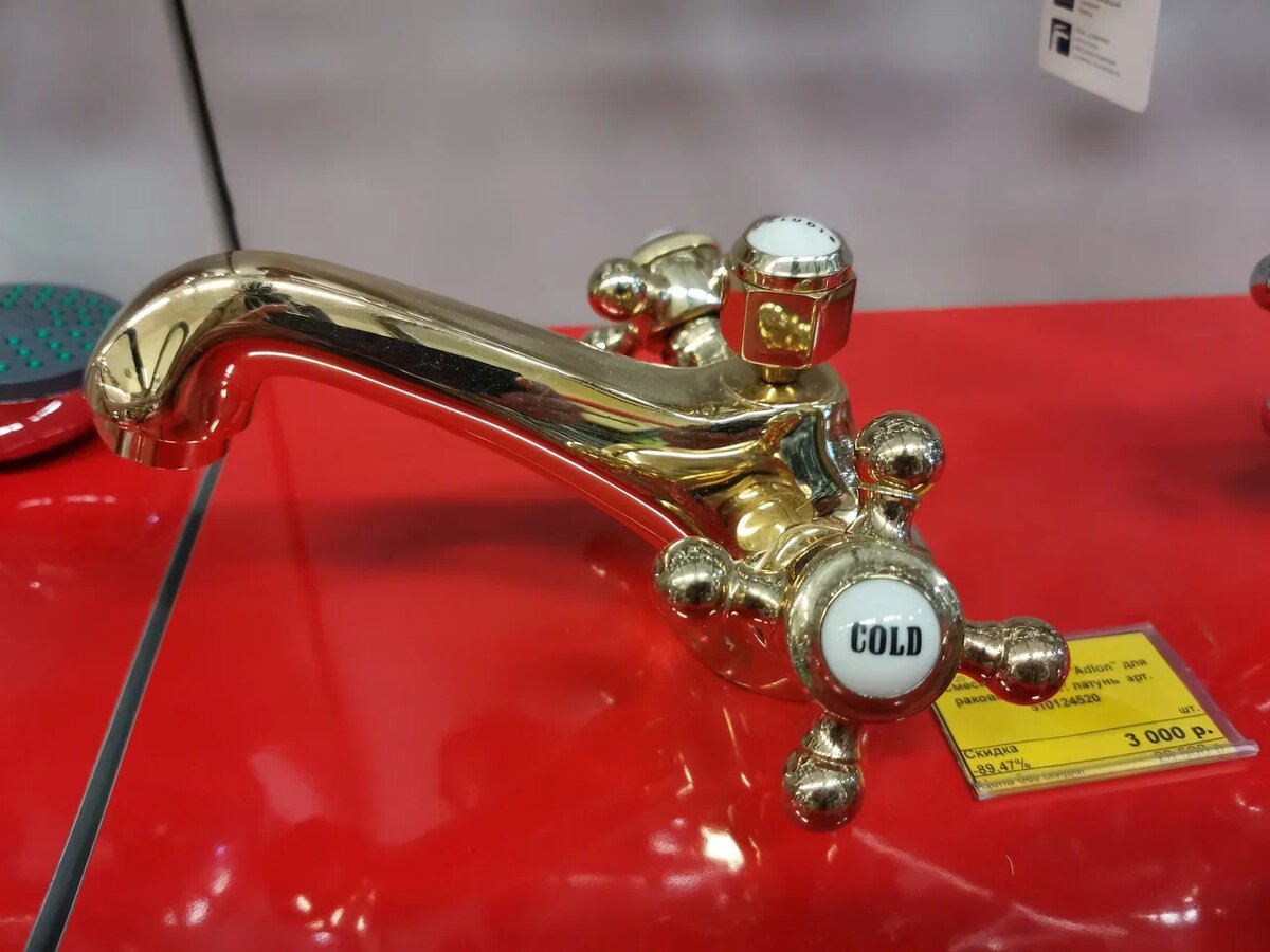 "Да это китайская подделка!" "Облезет ваше "золото" через полгода!" Такие комментарии писали мне, когда год назад я рассказала про покупку немецкого дизайнерского крана с напылением из чистого золота в 23 карата. Разумеется, покупать кран почти за 100 000 тысяч за полную цену я бы никогда не стала. Кукуха у меня, слава Богу, на месте. Хотя некоторые, видя нашу мансарду, и сомневаются.:) Кран этот я увидела в местной сантехнике. И стоил он 3000 (Три тысячи) рублей. Я не знаю, каким путем магазин дошел до такого аттракциона неслыханной щедрости. Но догадываюсь. Когда-то, году в 2014, а может и раньше, в Вологду пришла немецкая фирма KLUDI. Дорогая, качественная. Элитная даже, я бы сказала. В том числе, видимо, привезли в наш "Континент" и этот золотой смеситель, с ценником, сами понимаете, соответствующим. Шли годы. Менялся курс доллара, всякие другие события в мире происходили. И на краны за такие деньги в провинциальной Вологде, сами понимаете, очередь не выстраивалась. Смесители э