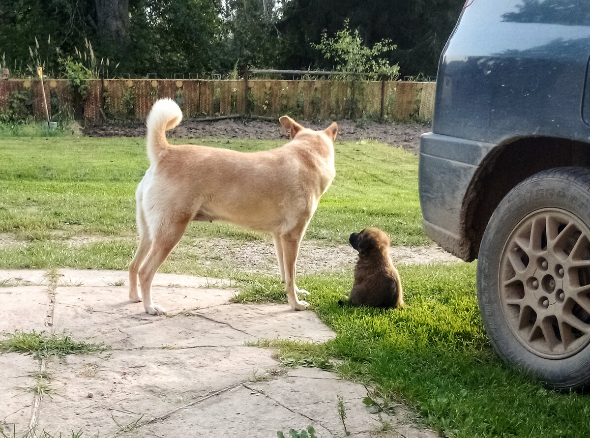 С огородом всё было просто: посадила, полила, прополола, убрала. Но с появлением курочек, а затем уток и поросенка, я стала понимать, что одной Ксюши как-то недостаточно. К тому же, Ксения становилась старше и немного ленивей, уже не так активно следовала за мной повсюду, чаще «дрыхла» где-нибудь в тенечке или дома. А тут еще и «лесное население» прознало, что в нашей деревне кто-то решил завести самое настоящее хозяйство. А это – и зерно в избытке (что привлекло мышей), а там где мыши – там и змеи и прочая лесная «братва» в виде лис, хорьков… Охрану нужно было усиливать. Так было принято решение завести еще одну собаку. И непременно большую собаку.