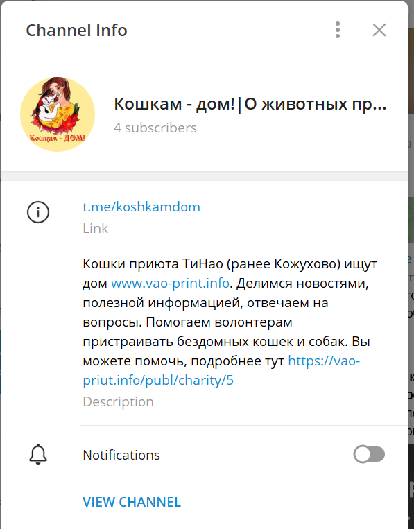 Приглашаем 😍 Будем рады всем присоединившимся 😻😻😻😻 Еще один канал поможет нам охватить дополнительную аудиторию, а значит, повысит шансы наших подопечных найти дом и хозяев 💗🐕🐈👩❤️💋👨🏡 🙌 Мы неоднократно подчеркивали, что главная цель волонтеров - найти дом как можно большему количеству животных, находящихся в приюте. Мы очень рассчитываем на вашу помощь в реализации этой цели. Спасибо всем! 💗🐕🐈👩❤️💋👨 В приюте ТиНАО (Москва) более 3000 собак и 300 кошек и все красавцы! Каталог кошек и котят приюта здесь https://vao-priut.info/load/cats/11Если вы хотите взять кошку из приюта, свяжитесь с волонтерами 916-390-96-32 Оксана, 929-623-02-81 Ирина О помощи животным приюта здесь https://vao-priut.info/publ/charity/5 Поддержите нас лайками, комментами, перепостами и подпиской на канал! Сп