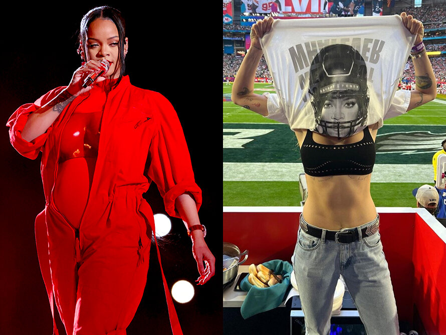 Легендарный матч состоялся! На Супербоул-2023 столкнулись команды «Филадельфия Иглс» и «Канзас-Сити Чифс». Но многим не было дела до того, что происходило на поле. Гораздо интереснее было наблюдать за грандиозным камбэком Рианны. Начнём с горячего. Рири вернулась на сцену спустя 5 лет! И не одна. Певица подтвердила вторую беременность, надев облегающий комбинезон. Надеемся, это не повод повторно уйти в долгий отпуск. Кстати, на пресс-конференции перед мероприятием звезда постоянно говорила о материнстве: «Когда мне впервые позвонили, чтобы пригласить [на Супербоул], я ответила: “Вы уверены?”. У меня третий месяц послеродового периода: должна ли я сейчас принимать такие важные решения? Вдруг я пожалею об этом? Но когда ты становишься мамой, происходит нечто такое, когда ты чувствуешь, что можешь покорить весь мир, ты можешь делать всё, что угодно. А Супербоул — это одна из самых больших сцен в мире. Так что, как бы это ни было страшно, в этом испытании есть нечто волнующее. И для меня в