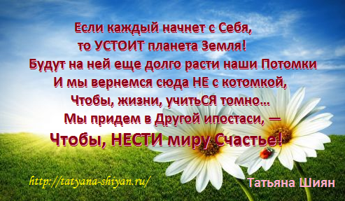 Душу включить и сам себя НЕ морочить и НЕ гнетить! Начните, Добро и Счастливо жить!