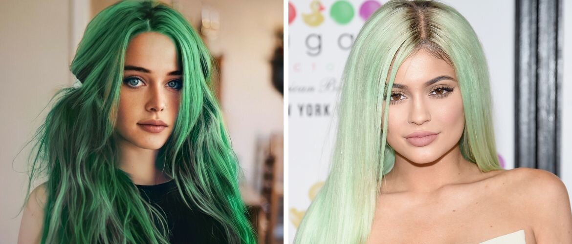 Вы когда-нибудь задумывались о том, чтобы кардинально изменить свою внешность? Самые большие и заметные изменения, которые может сделать женщина, — это начать с окрашивания волос. Зеленые оттенки стали очень популярны в последнее время и много женщин осмелились на такое экстремальное окрашивание. Самый яркие примеры — Билли Айлиш, Кэти Перри, Кайли Дженнер, Ким Кардашьян, Кара Делевинь и другие представительницы шоу-бизнеса. Какие есть оттенки зеленых волос? Есть много сложных оттенков зеленых волос, таких как неоново-зеленый, мятный, изумрудный, салатовый, бирюзовый, лесная зелень. Варианты бесконечны, и каждый оттенок имеет свою красоту и шарм. Оттенки зеленого можно использовать во многих различных техниках окрашивания. В зависимости от того, хотите ли вы экстремальный и интенсивный эффект или простое и более естественное изменение цвета, вы должны выбрать соответствующий тон. Если вам нравится более одного оттенка зеленого в ваших волосах, вы можете комбинировать их вместе, создава