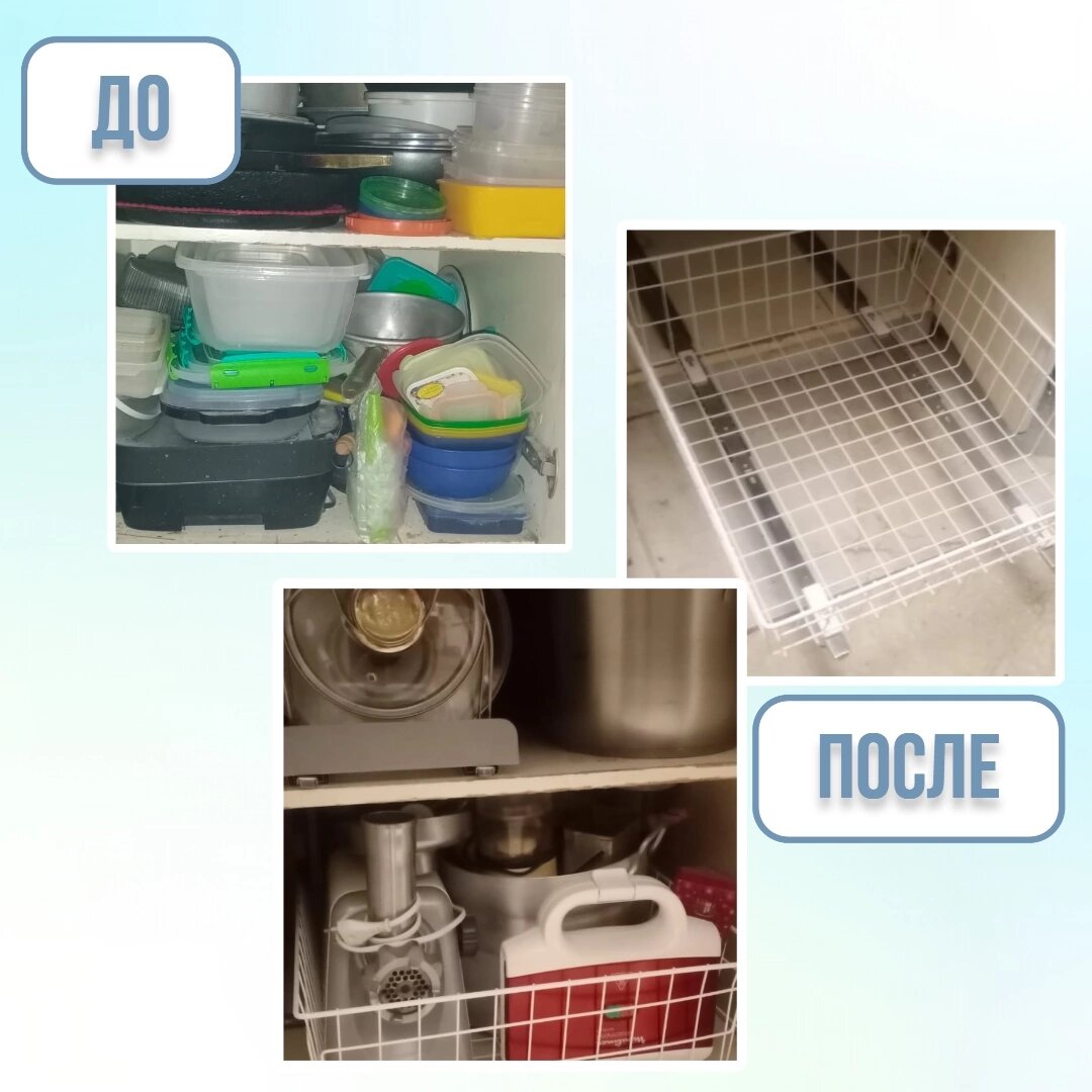 Как часто нам кажется, что впереди вся жизнь и мы откладываем принятие решений до лучших времен? Думаю, что каждый из нас хотя бы откладывал на завтра или на ближайший понедельник какое-то важное начинание. И не важно что это - составлять меню, начать ходить в спортзал, раньше ложиться спать или начать изучение иностранного языка... Организацию пространства откладывают до лучших времен по разным причинам - или съемное жилье, или мечта о новой квартире, или предстоящий ремонт. Но эти лучшие времена могут наступить не скоро или не наступить никогда, а жизнь проходит... Но я хочу вам показать пример моей знакомой, которую я немного заразила организацией пространства. И ее старенькая и маленькая кухня заиграла новыми красками. А всего-то разобрали один тумбовый стол, расстались с ненужной утварью и дополнили этот стол выдвижной корзиной и выдвижным органайзером для крышек и форм. Теперь ко всему есть легкий доступ и она не нарадуется изменениям. Вы хотите преобразить окружающее вас про